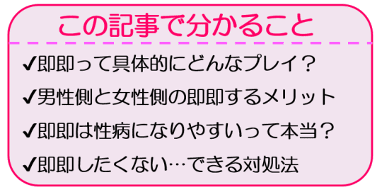 なんとなくイメージはできるけど、詳しくはわからないという方のために即即についてお伝えします。