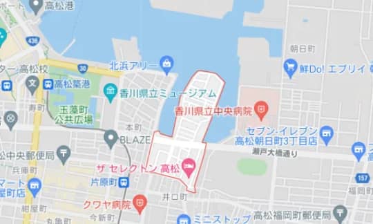 高松で特に風俗店舗が密集しているのが、城東町と呼ばれているエリアです!旧丸亀城から東にある地域~北側の半島を埋め立てた港街に位置しています。戦前に存在した遊郭の名残だとか。