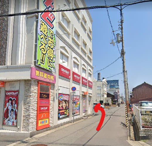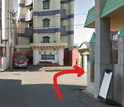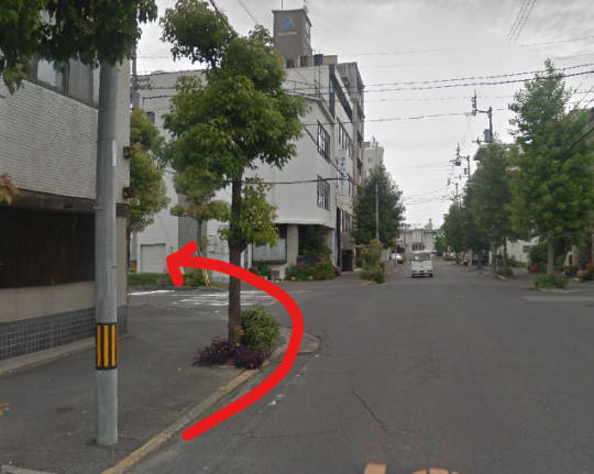 無料相談所を曲がり、1つ目の角を左に曲がります。
