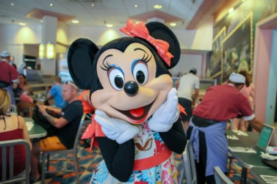 ミッキー、ミニー、ドナルド、デイジー、グーフィーに会えるキャラクターダイニングで、季節によって衣装が変わるのが特徴です!
