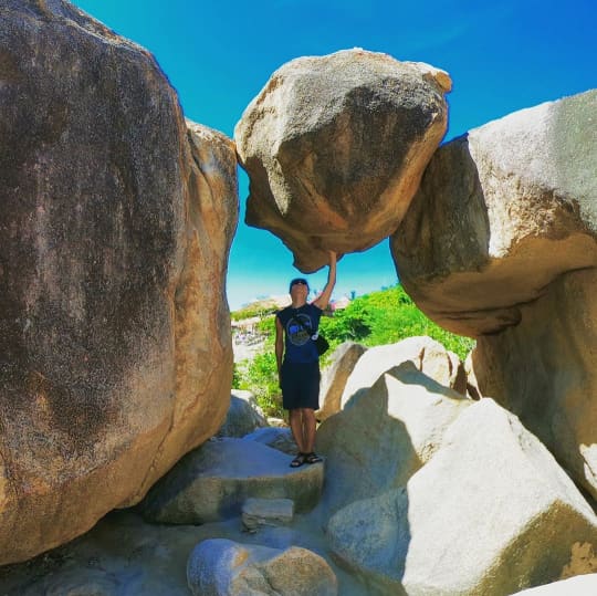 ニャチャンの美しい海を高台から眺めることができ、大きな岩と岩の間にはさまった、「落ちそうで落ちない」奇岩でも有名です。