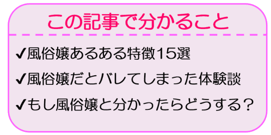 元風俗嬢が風俗嬢を見破る技を伝授します!夜の女には特徴がある!気になるあの子はいくつ当てはまる?風俗嬢の特徴を15こ挙げてみました!いくらカマトトぶっても、染み付いた風俗の癖は隠せないもの。元風俗嬢が教えるから、的中率は100%です♥