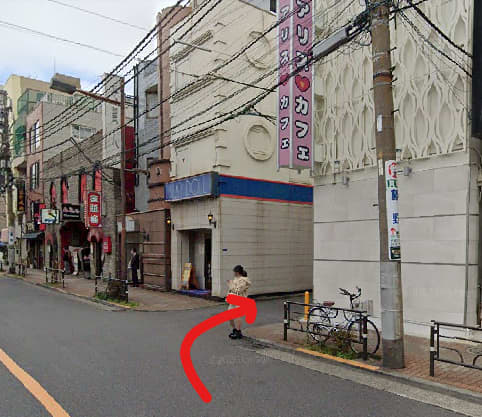 吉原ルーブルまでは吉原大門交差点から徒歩5分。ガソリンスタンドを左に曲がり、道なりに真っ直ぐ進みましょう。