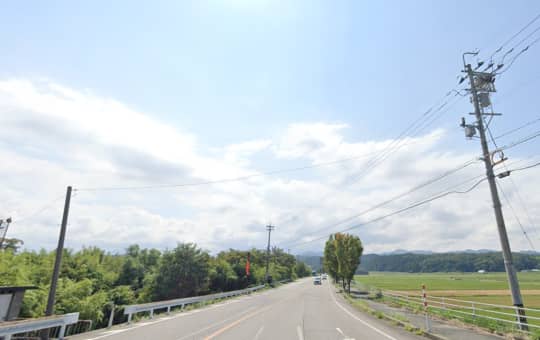 こちらの道を永遠と真っすぐ行くと目的地に到着します。
