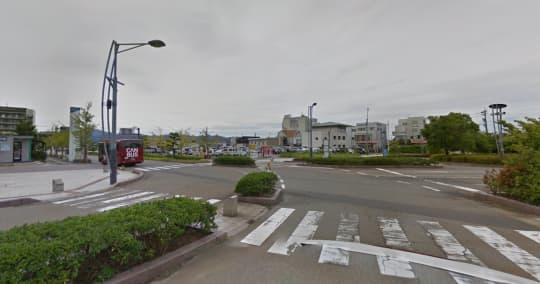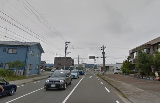 目的地少し手前右に「第一交通」の事務所及び車庫があります。