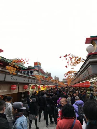 雷門を抜けると仲見世商店街です。仲見世商店街は日本で最も古い商店街の一つです。
