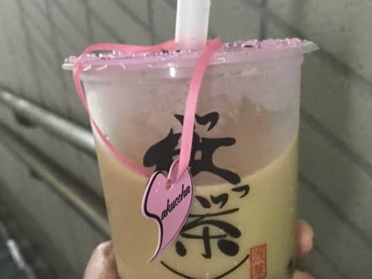 上の画像は、新仲見世商店街にオープンしたばかりのタピオカ専門店「桜っ茶」のタピオカミルクティです。出来立て熱々のタピオカが、ふわふわモチモチで、すごくおいしかったです!