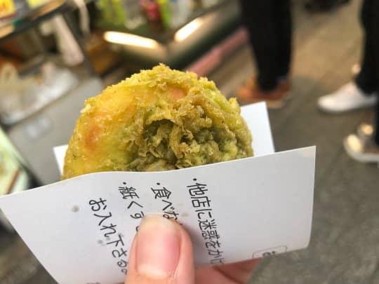 仲見世通りの買い食いといえば「あげまんじゅう」です。有名なのは浅草九重の「あげまんじゅう」でお土産はもちろん、一つから購入できます。