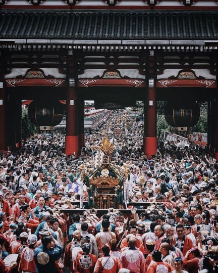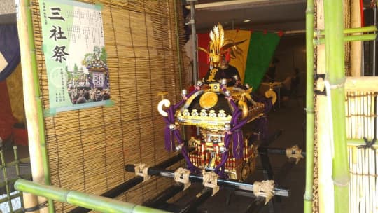 毎年5月の三社祭にはたくさんの観光客が訪れます。三社祭のお神輿のスタート地点とゴール地点が浅草神社です。