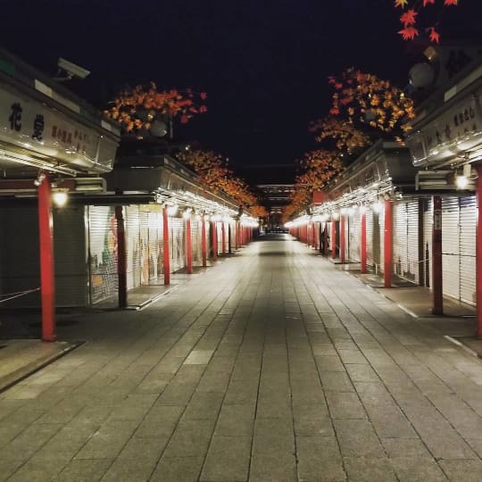 仲見世商店街は18:00過ぎにはお店がほとんど閉店し、観光客も激減します。情緒あふれるインスタ用の写真が撮りたい人は、夜間に訪れるのもおすすめです。