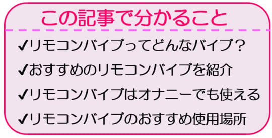 ところで「リモコンバイブってなに?」という人もいるかもしれないので、簡単に説明をすると、「無線でリモコン操作が可能なバイブのこと」です!