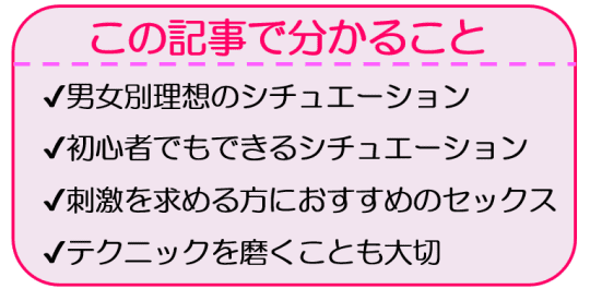 今回はセックスでのさまざまなシチュエーションについて紹介していきます。