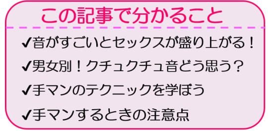 そして、今回のテーマである手マンをするときに出る「クチュクチュ音」。愛撫の中でも挿入までに気持ちを盛り上げていくための大事な過程のひとつです。