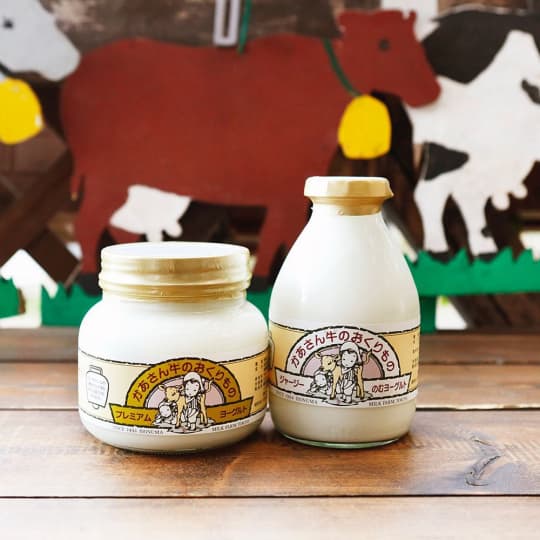 大事に育てられたジャージー牛のミルクから作られた、かあさん牛のおくりもの【プレミアムヨーグルト】(写真左)