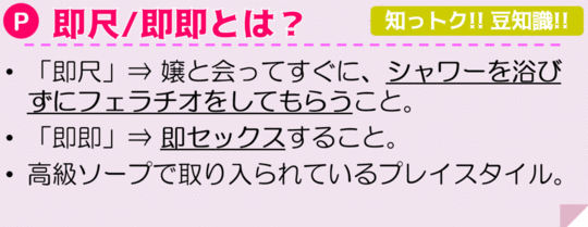 先に説明したように即即(即尺即ベッド)は高級店のサービスですが、格安店でも即即可能なソープ嬢って結構いるんですよ。