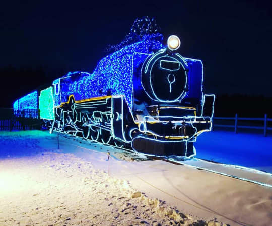 続いてご紹介するのは、岩手県の花巻と釜石区間を走る「SL銀河」です。SL銀河の列車は、銀河をイメージする真っ青なボディに、オリオン座などの星座が金色で描かれた鮮やかなラッピング列車。