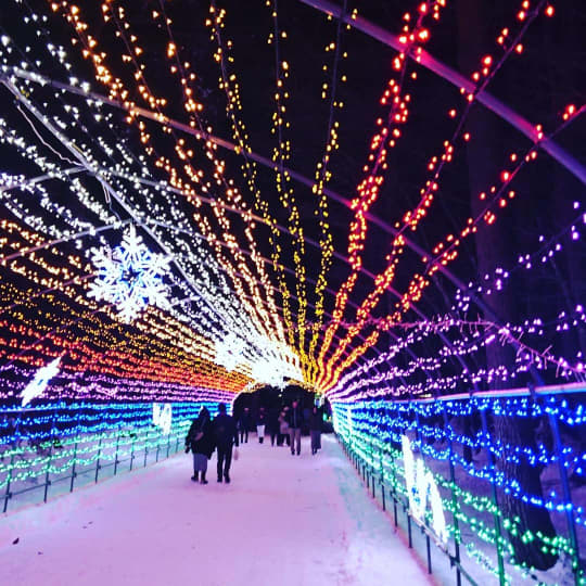 続いてご紹介するのは「小岩井ウィンターイルミネーション 銀河農場の夜」です。このイルミネーションは、100万球の電飾を使われた東北で最大級のインスタ映えするイルミネーション。ライトアップ期間中は、小岩井農園のいたるところがイルミネーションの光で彩られ、レストランや売店も特別営業しているので、ライトアップと合わせて食事や買い物を楽しめます。