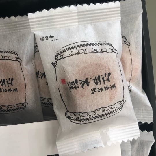江戸太鼓は、醤油の香るモチモチの皮に、ごま風味の餡が楽しめます。日本の昔ながらの「砂糖」と「醤油」の甘じょっぱい味が好みの方におすすめの和菓子のお土産ですよ。
