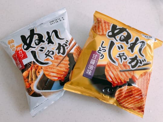 続いてご紹介するのは、カルビープラスの「ぬれじゃが」です。ぬれじゃがは「ぬれじゃが甘醤油味」と「ぬれじゃが串カツソース味」があります。