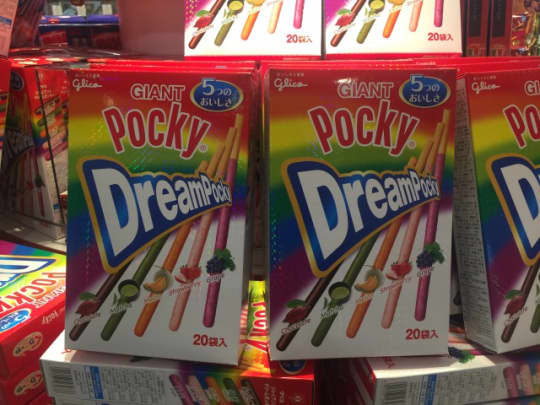 まず最初にご紹介するお菓子のお土産は、ぐりこ・や人気NO.1の「ジャイアントドリームポッキー」です。このポッキーは、18センチもあるその大きさに加え、ひと箱で5つの味が楽しめるのも人気の秘密です。