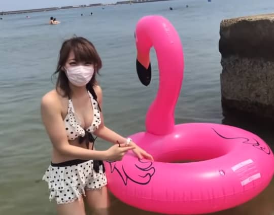 ノーブラではない動画も配信しており、水着で散歩している動画も人気ですね。