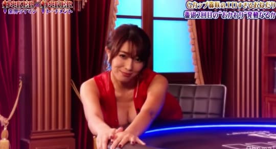 ちょうどこの動画だと、18:05から思い切り前屈みでブラが見えるくらいはっきり胸がの谷間が見えるシーンが、ベストシーンではないでしょうか!