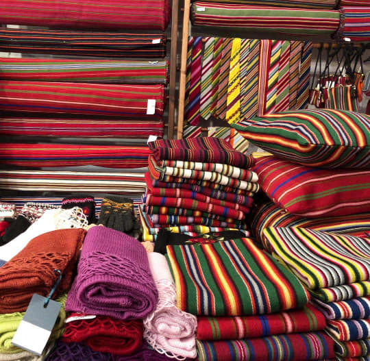 最後にお勧めしたいのが伝統柄を用いた小物です。地域によって柄のデザインは異なりますが、特徴的なのは色鮮やかな縞模様です。民族衣装によく見られる柄が、もっと身近なポシェットやネクタイ、クッションカバー、ブローチやピアスなどのアクセサリーにも用いられています。