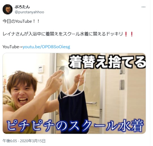 今でこそカップルとして有名ですが、こちらの動画では「ぷろたんが丸の内OLレイナにスクール水着を着せようとするドッキリ」をしかけます。