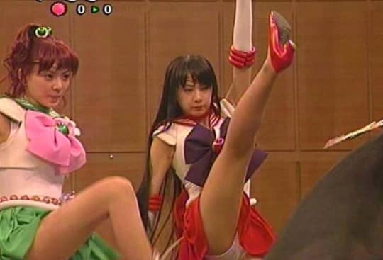 セーラームーンに出演していた時の稽古写真ですが、高く足を上げているので、がっつりパンチラです!!