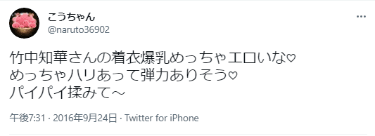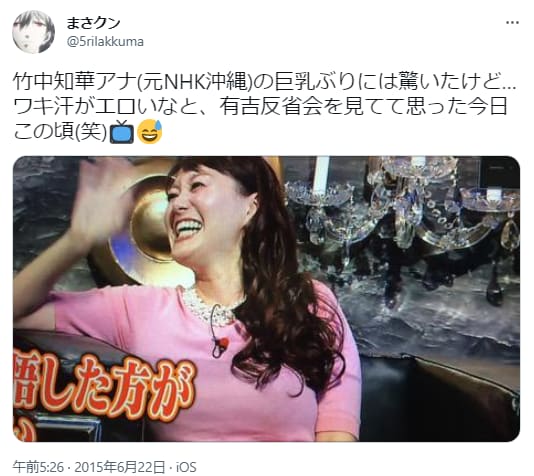 クレーにしろ賞賛にしろ、女子アナとしての資質を問う原稿読みの正確性とか滑舌などではなく、すべておっぱいというところがなんとも竹中知華です(笑