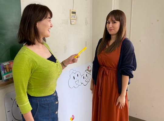 乳は類を呼ぶのか、山形のスイカップ対沖縄のパイナップル乳の対決だけど、お互いが爆乳を見つめる目線がまるで爆乳熟女のAVモノそのもので超エロいでしょ。
