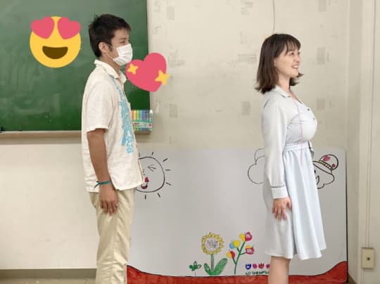 お辞儀では谷間が見えないように、両面テープで衣装と谷間を接着してました