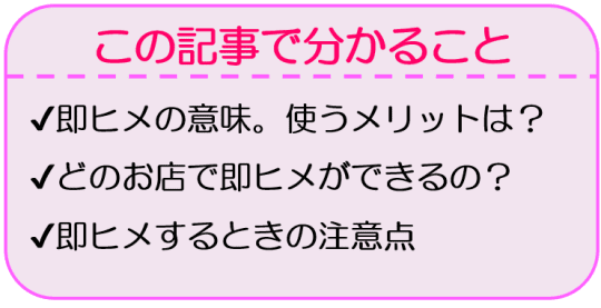 即ヒメの即は今すぐという意味です。ヒメは姫のことで風俗嬢のことを指します。