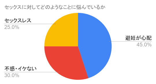 こちらの画像は、「セックスに関してどのようなことに悩んでいるか」というアンケート結果を表にしたもの。