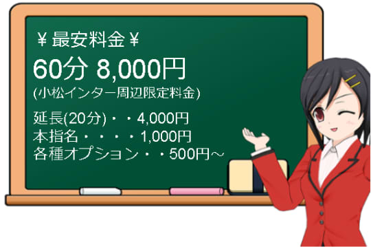 "ちゃんこ石川小松店"の利用料金は一般的なデリヘルと比べてとてもリーズナブルです。