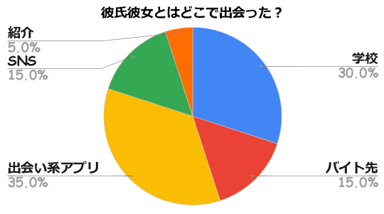 彼氏彼女がいる18歳19歳の男女200人に出会いの場をネット上でアンケートを取った結果です。