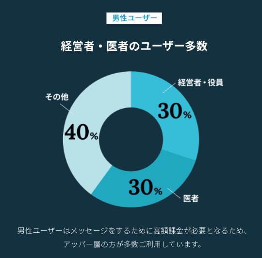 登録している男性は、paddy67同様に経営者や医者などが多数です。