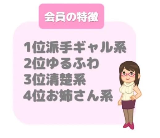 ギャル系、かわいい系、清楚系、お姉さん系、いろんなタイプの女の子がいるので、好みの子が見つけやすいのも嬉しいですね。