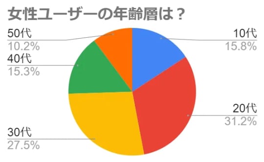 グラフを見ると、出会い系サイトユーザーは20代から30代が最も多いことがわかります。注目すべきは10代のユーザー数!