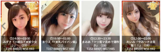プロフィールに偽りなし!10代がほとんどだからか、感度がいい嬢が多いね。若いのにプレイもよく研究している。(研究職・31才)