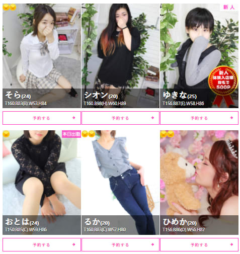 19歳~26歳まで60名弱在籍。そのほとんどは22歳前後…洋物AV並みの美乳・巨乳・美尻女性が多いのがポイントです。