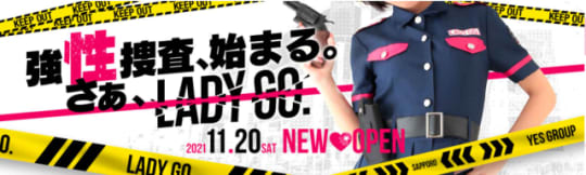 YESグループがすすきのに新ヘルス【LADY GO.】をOPEN。YESグループLADY GOはアメリカンポリスのコスプレをした若い嬢たちと1万円以下と安い料金でエロのイメージプレイが出来ます。可愛い嬢の色仕掛けの取り調べはハラハラドキドキ。口コミ情報も公開!