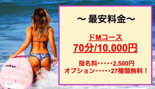 最安料金は、ドMコース70分10,000円から。90分や120分でも16,500〜22,000円と格安の設定で、他のデリヘルと比べても安く長い時間遊べるのが良いところ。