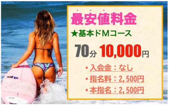 主なコースは、基本のドMコース・3Pコースなどの設定!1番安い料金は、ドMコース70分/10,000円です。