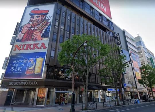 すすきの5条メイプル通りを進むと途中メイプル通りビルがあります。