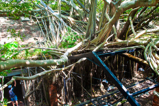 巨大なガジュマルの木が朽ち果てた廃墟を飲み込む姿は生命力の強さを感じ、自然の力はすごいと感じざるを得ない神秘的な光景を見ることができますよ。
