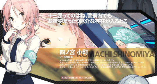 https://al.dmm.co.jp/?lurl=https%3A%2F%2Fdlsoft.dmm.co.jp%2Fdetail%2Fdigination_0006%2F&af_id=trip01-001&ch=toolbar&ch_id=link【ストーリー】第七共和国。その国を守る警察組織の中でも、厄介者やはぐれ者、問題児が集まる十三課。 その十三課に所属する主人公日流ルカは、刑事としての腕は立つが言動や行動に問題が多く、 かつて凄惨な事件を引き起こしたある事件に固執するあまり、上層部に目を付けられ十三課に押し込められていた。 誰とも組まず一匹狼を貫き通してきたルカだったが、新たに配属されたエルフで新米刑事のクラリスとコンビを組まされることとなる。 息は合わず無能な新人、無能な上司の関係で時間が過ぎていく中、第七共和国へと亡命してきた一人の少女を保護したことで、日々は大きく変わっていく。