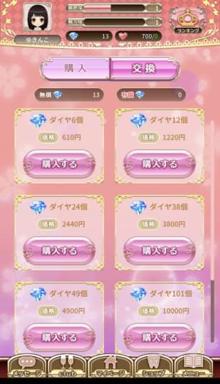 恋下統一の通貨はハートとダイヤの2種類があります。