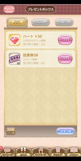 ハートは毎日150個までプレゼントされますが、その日のみ有効なので貯めておくことはできません。