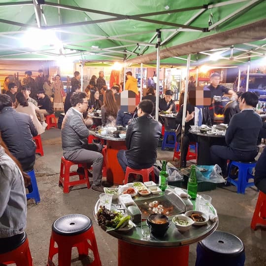 一方、もうひとつの代表的エリア・鍾路(チョンノ)エリアに広がるのは포장마차(ポジャンマチャ)といわれる、野外にテーブルがあり、お酒を飲みながらスンデやコプチャンなどをつつきながら楽しむタイプの屋台があります!韓国の焼酎やマッコリを飲みながら屋台グルメを楽しめ、価格もw3,000~w15,000(約1,200円以下)で多くのグルメが味わえるのも特徴です。